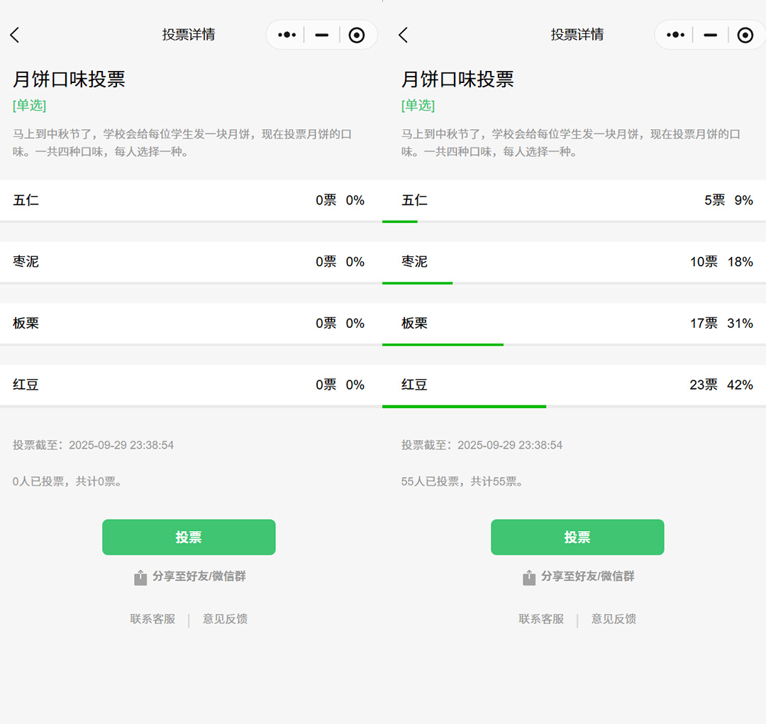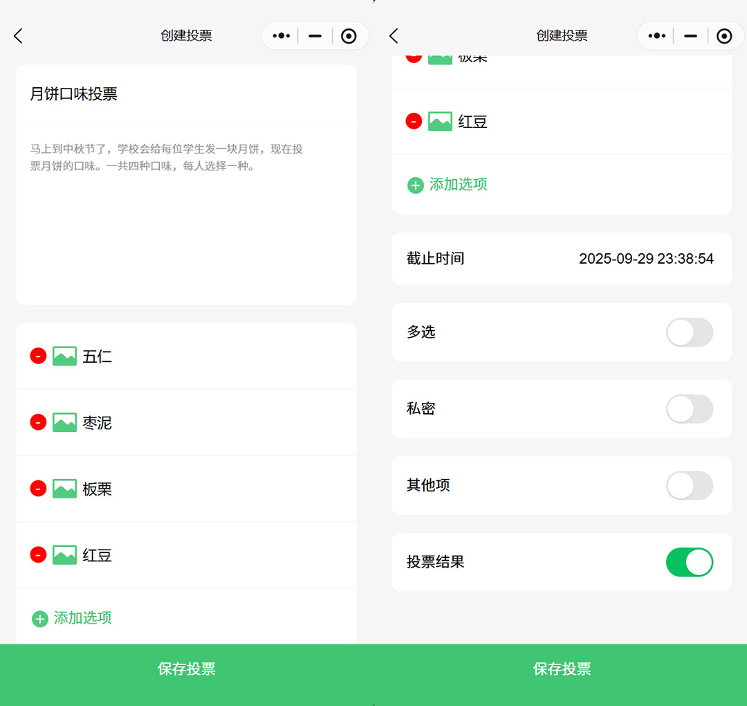 在微信群里做个意见表决,比如确定聚餐时间、班级评选、团队决策等,过去我们只能让每个成员发表意见,然后自己手动统计,不仅麻烦,还容易错漏,而现在,利用小程序就能轻松搞定,群内决策更高效。