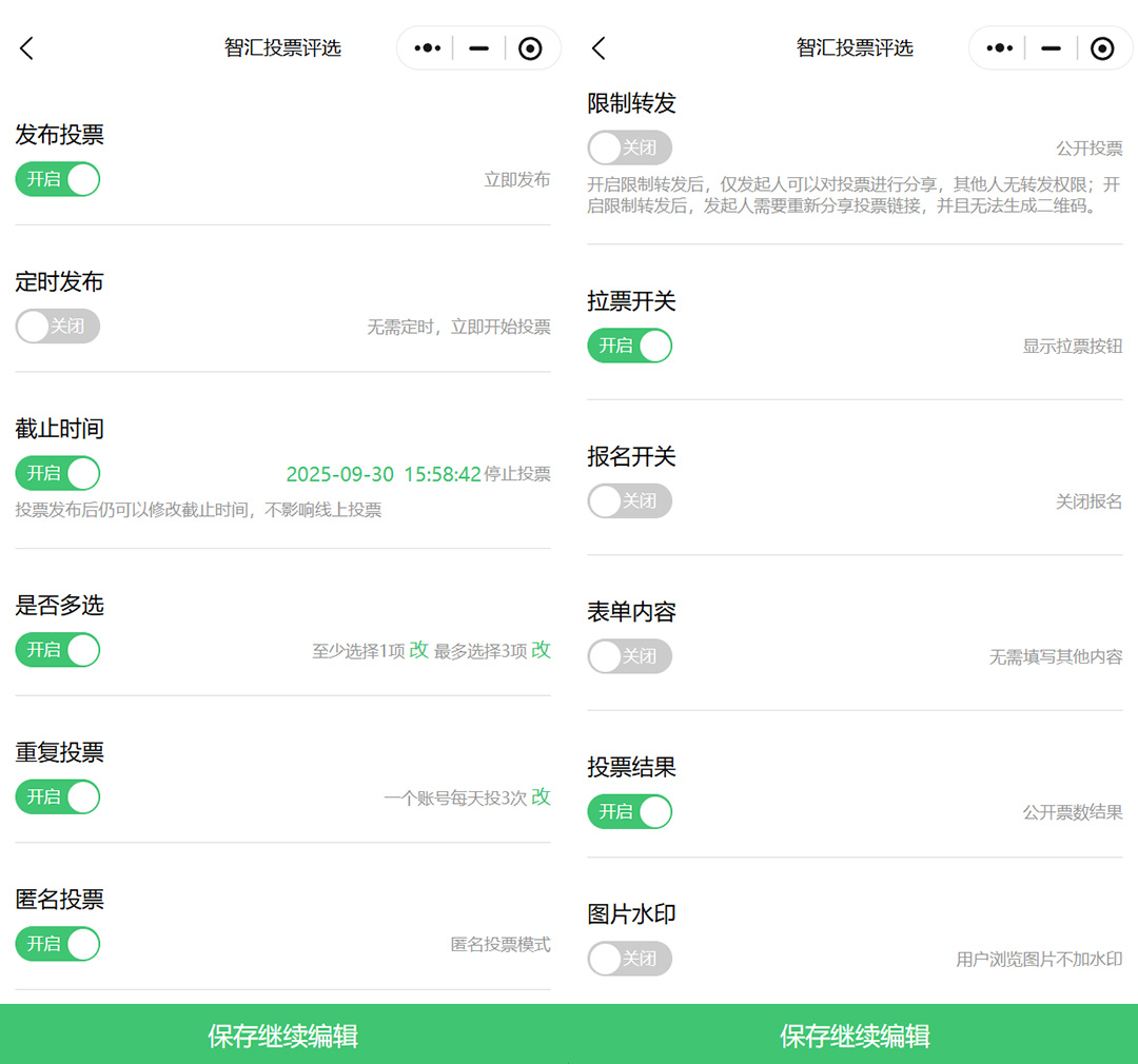 想要快速搞定内部投票?线上投票助手小程序一键生成链接,私密模式防干扰。大型评选活动?智汇投票评选支持图文视频、防刷票,功能齐全又稳定。公众号投票直接插入推文,粉丝参与更流畅——根据需求选对工具,投票事半功倍!