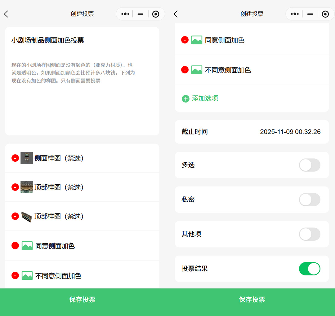 填写完毕后,点击保存投票。记得先预览一下,确保所有内容都准确无误。在投票界面点击分享,我们就可以将投票分享到你的微信群聊中了,邀请大家参与投票。