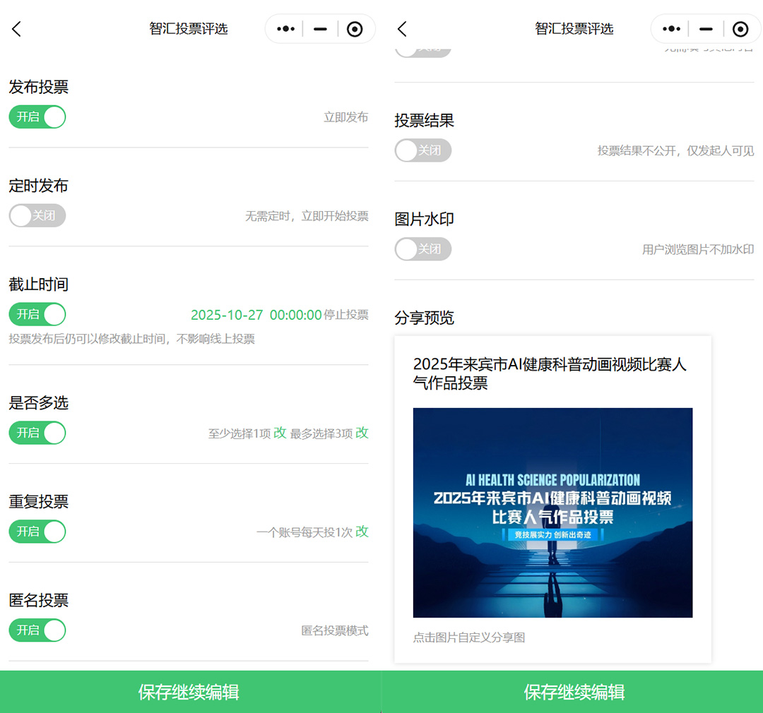 接着来到投票规则的设置,这是保障活动有序进行的关键,如投票截止时间,需要合理设置,给足够的投票周期。