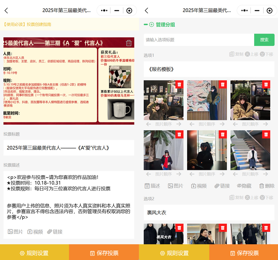 投票主题:简洁,突出核心,如2025年度最美代言人评选。