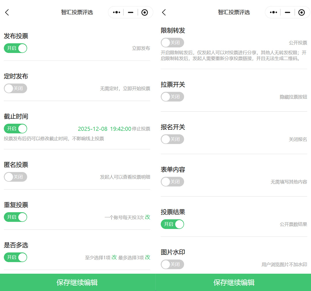 根据我们的活动需求,设置是否匿名、是否多选、是否公开投票结果等。