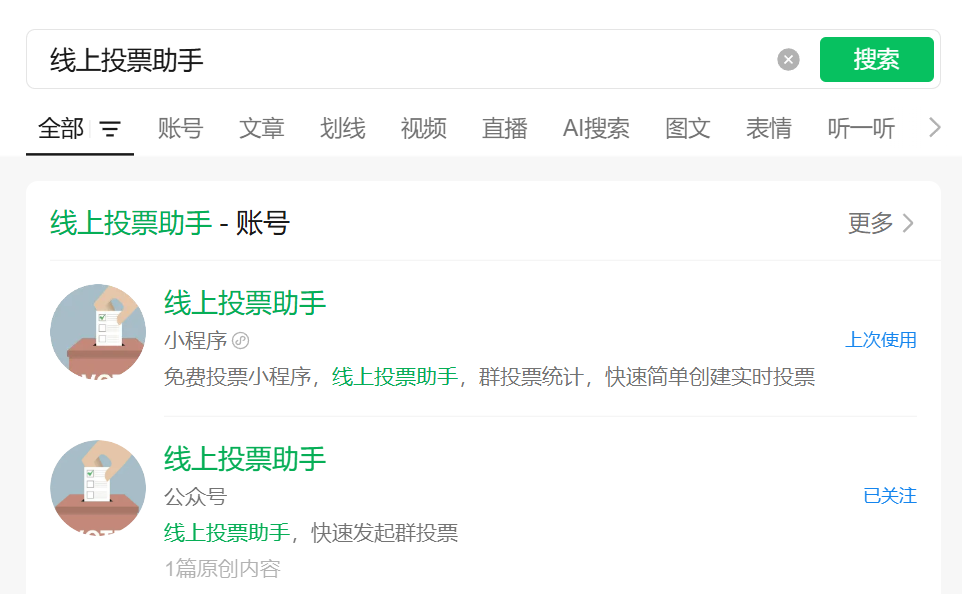 微信搜索投票工具,如线上投票助手、腾讯投票等,进入小程序即默认微信登录,可以直接点击创建投票按钮,新建一个空白的投票页面。