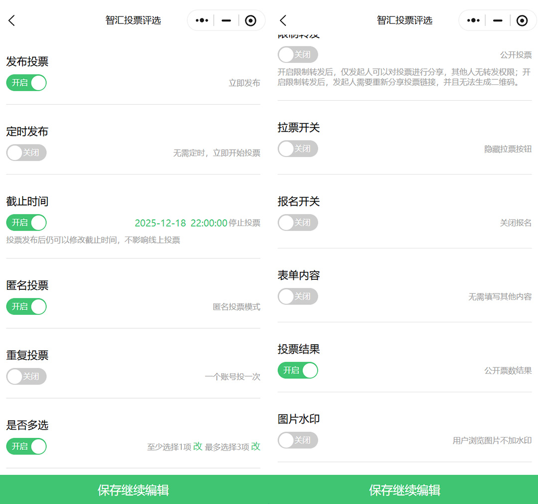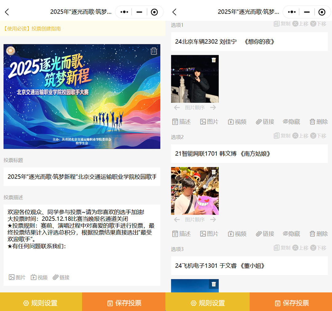 完善活动主题、作品信息以及投票规则后,即可保存并预览投票界面效果。
