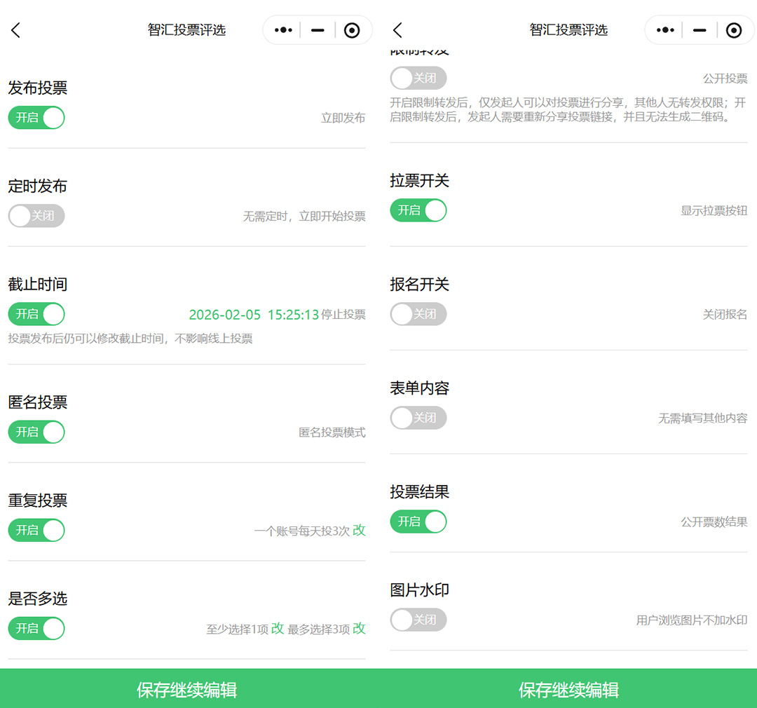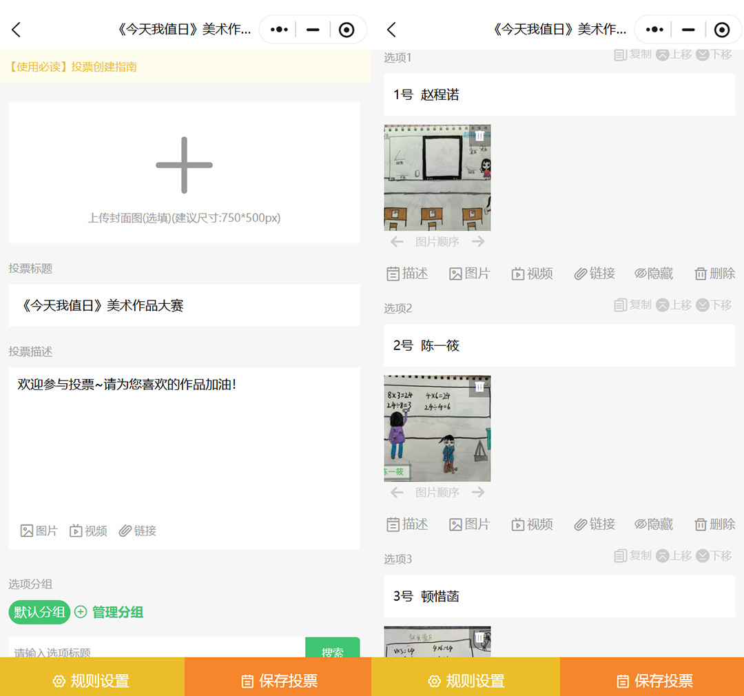 再接着就是完善投票规则啦,像投票时间、报名时间,还有用户能投几次票这些,都得设置好。